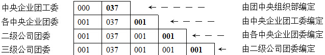 【團組織機構(gòu)代碼】錄入該團組織被賦予的代碼,為層次型結(jié)構(gòu)編碼,每3位為一層,每一層表示一級團組織,每個團組織編碼由上一級團組織編定。如團中央組織部為中央企業(yè)團工委等編定代碼,中央企業(yè)團工委為在京中央企業(yè)團委編定代碼,在京中央企業(yè)團委為下屬二級公司團委編定代碼等。